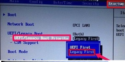 選擇UEFI/Legacy Boot Priority,按回車鍵——選擇Legacy First,按回車鍵;