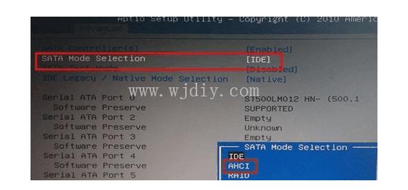 在彈出的新窗口中,我們將硬盤模式改為“AHCI”模式,然后按ENTER鍵執(zhí)行即可