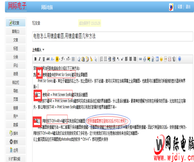 方法三:同時按下Ctrl+Alt+A鍵可實現選擇區域截圖(該快捷鍵需要在登陸QQ后才可以使用)