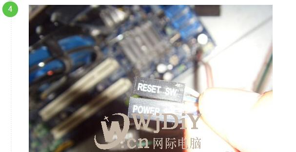 第五步:我們將“RESET”線插到原來的“POWER”線原來插的地方去,“POWER”線拿起來不插。